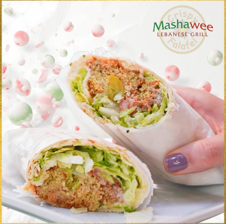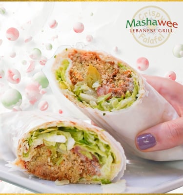 Eggplant and falafel wraps toasted in authentic tannour bread.